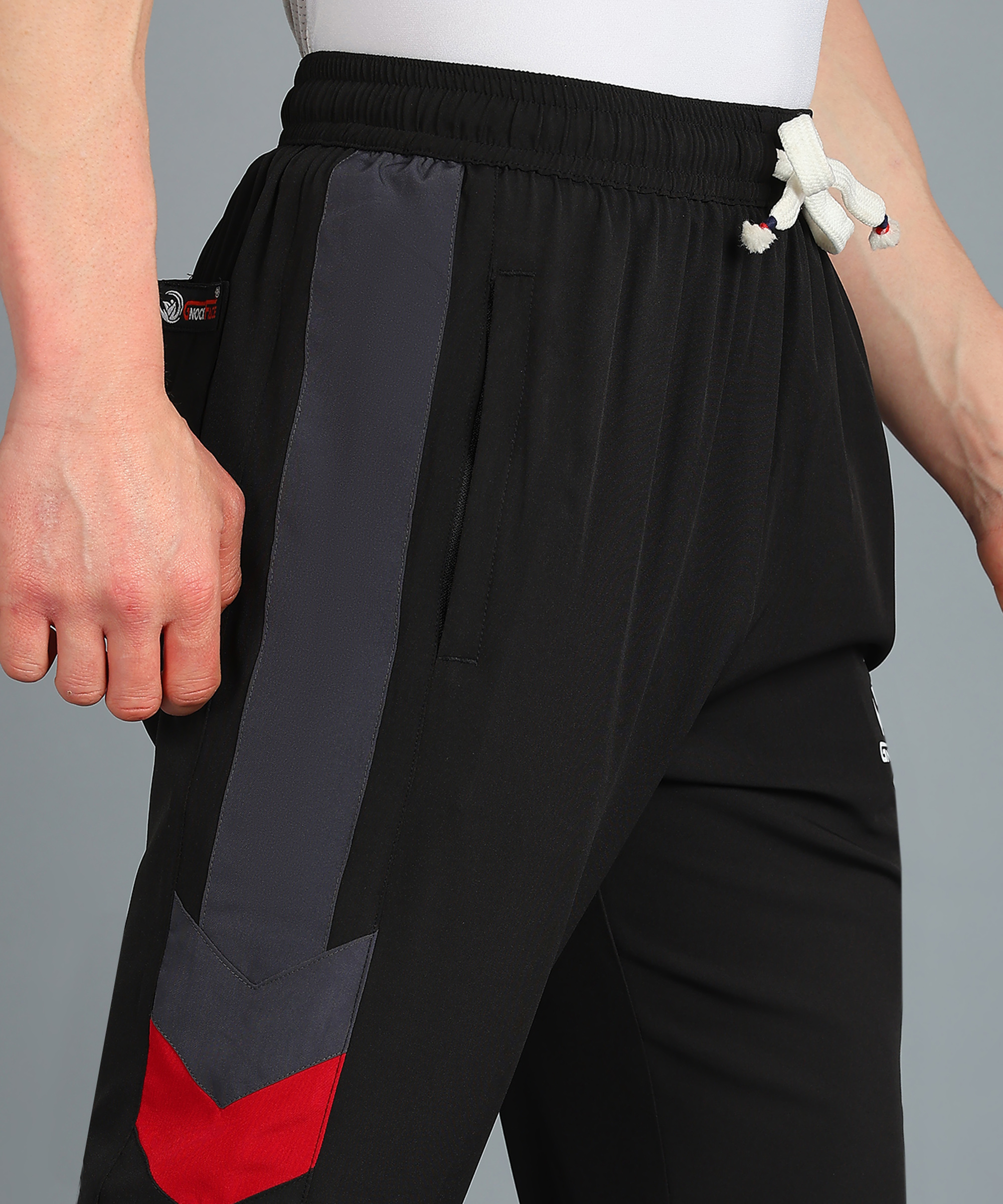 | FEATURES | – Active track pants for your daily workouts – 2 Normal Zipper Pockets 1 Back Pocket – Lightwaight Fabric – Contrast silver panelling with Gnockface Logo branding |